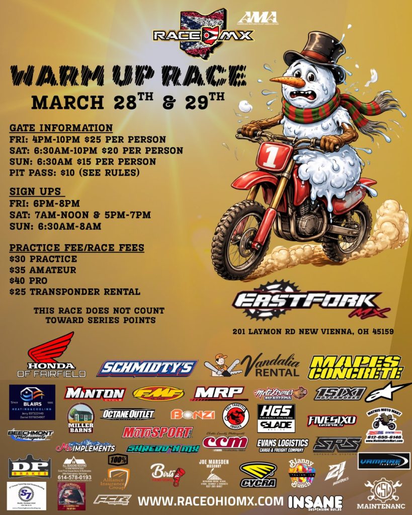 We have 3 to 5 MX races at East Fork a year that is part of the Ohio Buckeye Series. You can either race individual races or try out some of our other tracks we manager or partner with.
